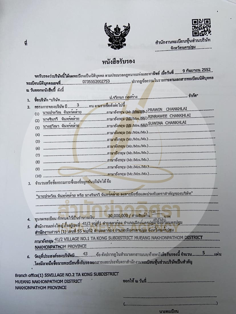 สำนักงาน : โรงแรมเดอะ รอยัล ริเวอร์ เลขที่ 219 ซอยจรัญสนิทวงศ์ 66/1 แขวง บางพลัด เขตบางพลัด กรุงเทพมหานคร 10700