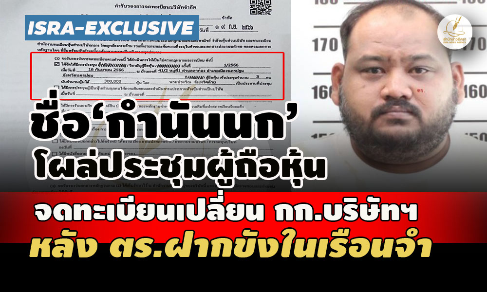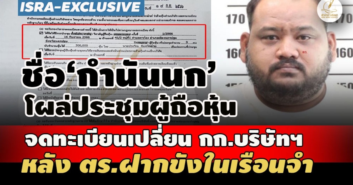 • ชื่อ ‘กำนันนก’ โผล่ประชุมผู้ถือหุ้น-จดเปลี่ยน กก.บริษัทฯ หลัง ตร. ฝากขังในเรือนจำ