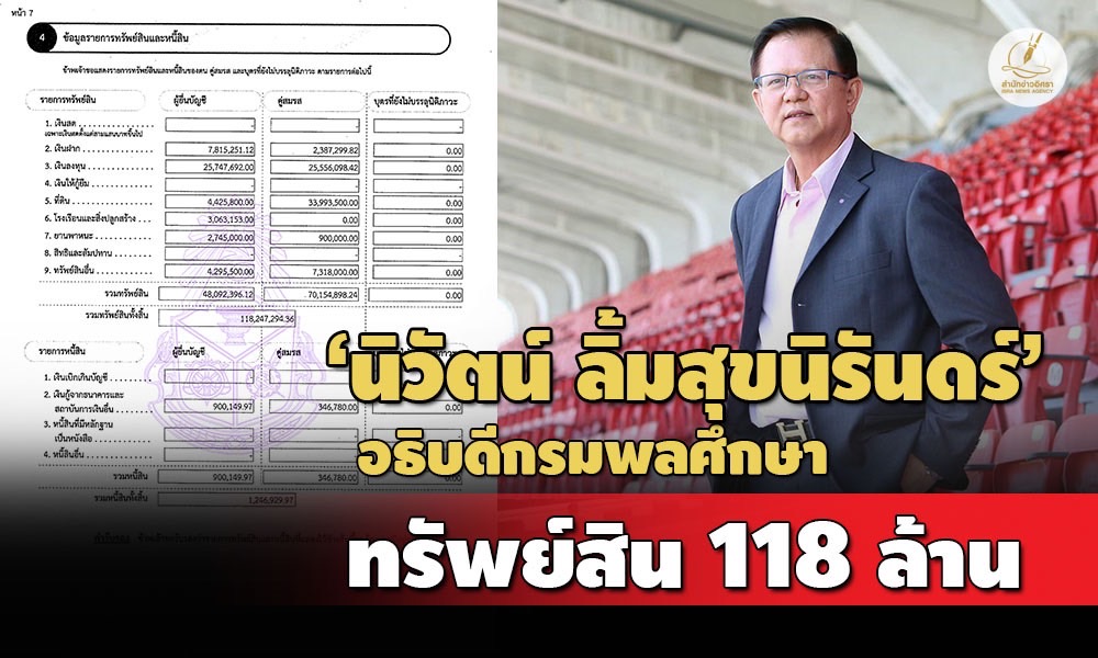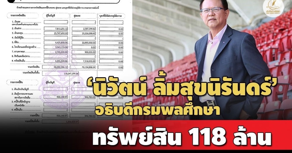 • 118 ล้าน! ทรัพย์สิน 'นิวัตน์ ลิ้มสุขนิรันตร์' อธิบดีกรมพลศึกษา สะสมท่องคำแท่งหนัก 50 บาท