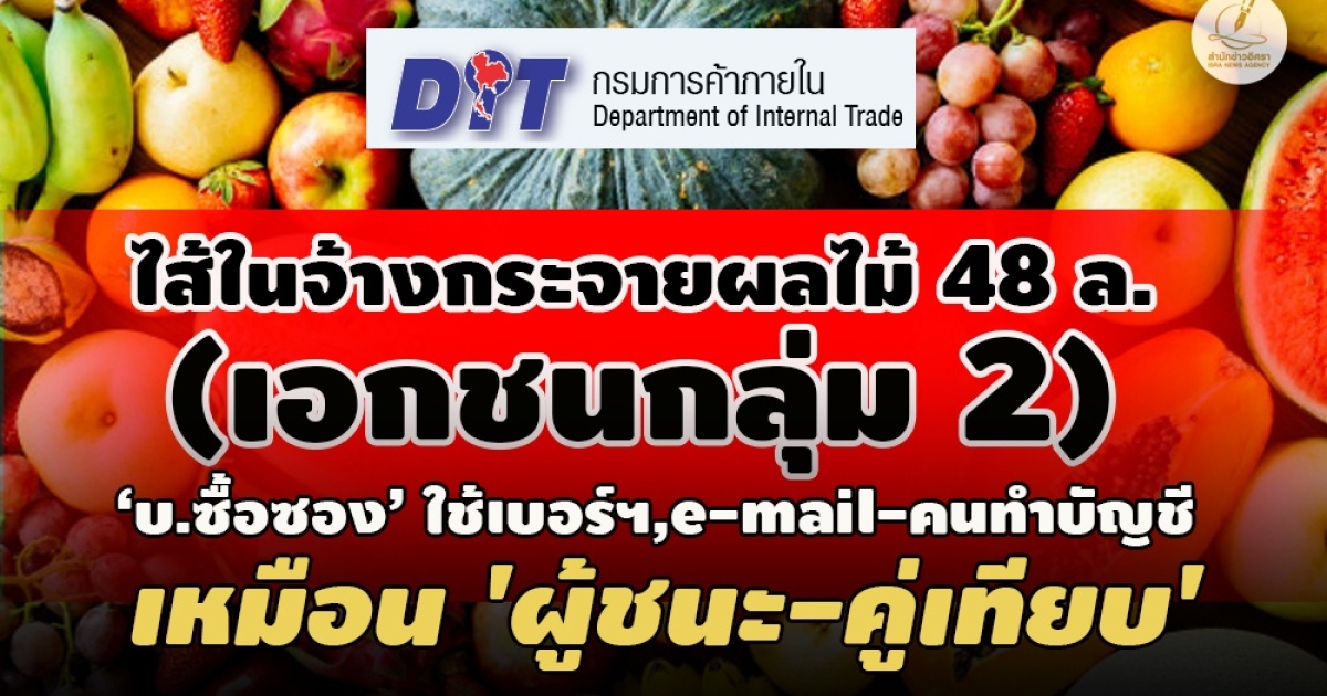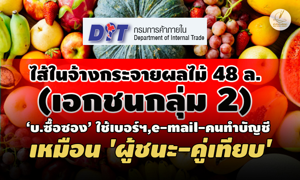 • ไส้ในจ้างกระจายผลไม้ 48 ล. 'บ.ซื้อซอง'ใช้เบอร์ฯ,e-mail-คนทำบัญชี เหมือน'ผู้ชนะ-คู่เทียบ'