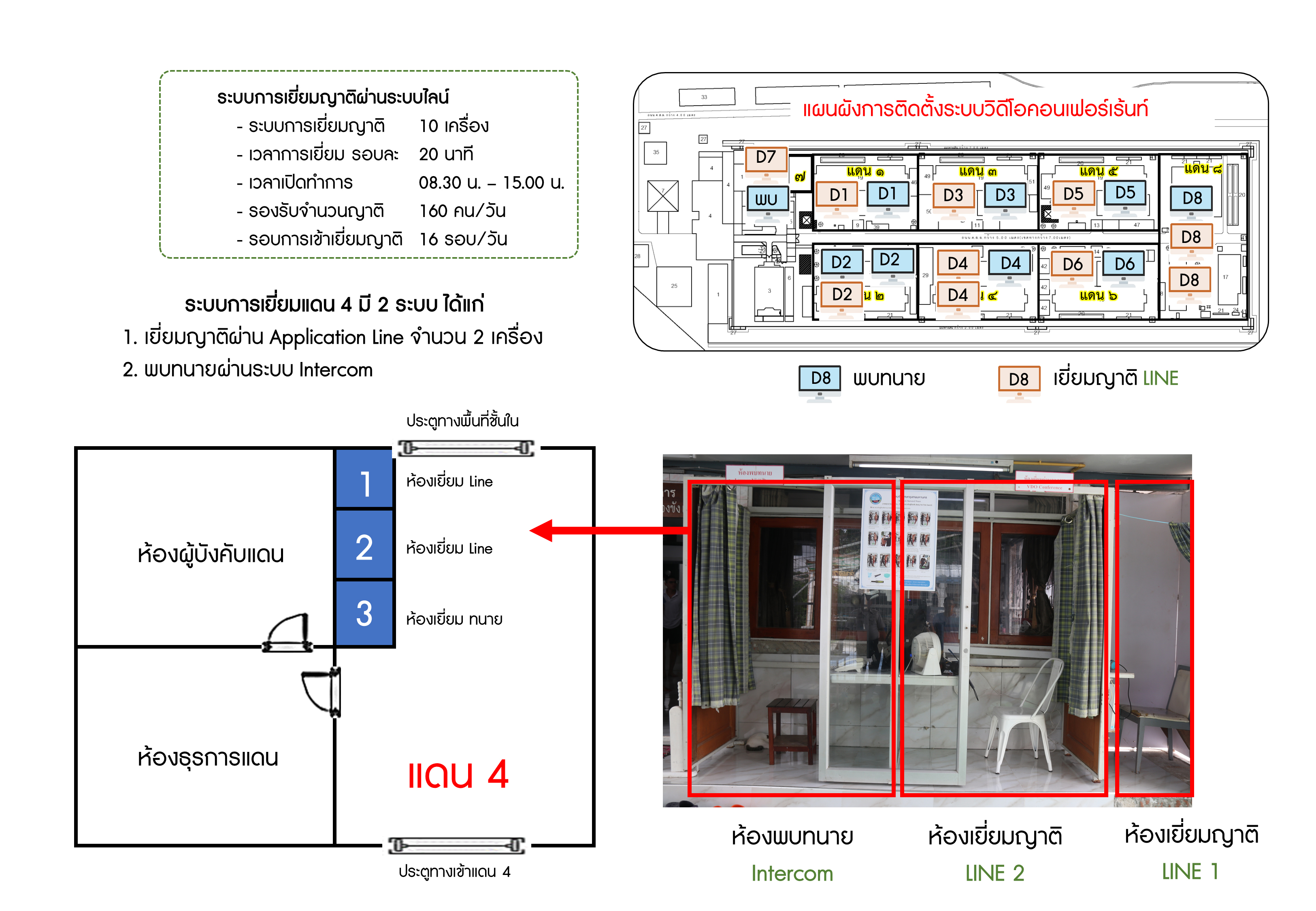 ทั้งนี้ ในการชี้แจงข้อมูลเรื่องนี้ พ.ต.อ.ทวี ได้ส่งข้อมูลเอกสารแสดงแผนผังกระบวนการเยี่ยมญาติด้วย ระบบapplication line ในเรือนจำมาให้สำนักข่าวอิศรารับทราบด้วย ซึ่งการเยี่ยมญาติระบบนี้ เจ้าหน้าที่งานเยี่ยมญาติ จะเป็นผู้เชื่อมต่อระบบไลน์ ตามวัน และเวลา ที่ญาติผู้ต้องขังได้ลงจองเยี่ยมไว้ และคอยเฝ้าสังเกตพฤติกรรม หากพบว่ามีการกระทำผิดระเบียบจะตัดระบบทันที