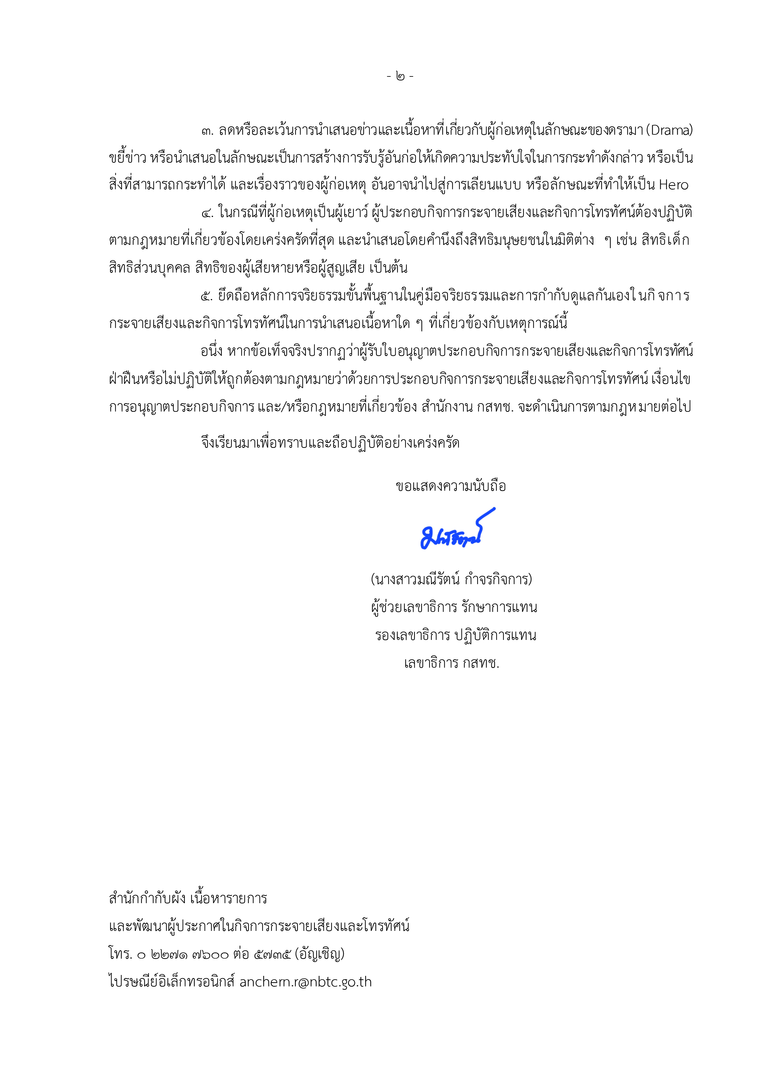 สำนักงานคณะกรรมการกิจการกระจายเสียง กิจการโทรทัศน์ และกิจการโทรคมนาคม แห่งชาติ (สำนักงาน กสทช.) จึงขอความร่วมมือให้ดำเนินการ ดังนี้