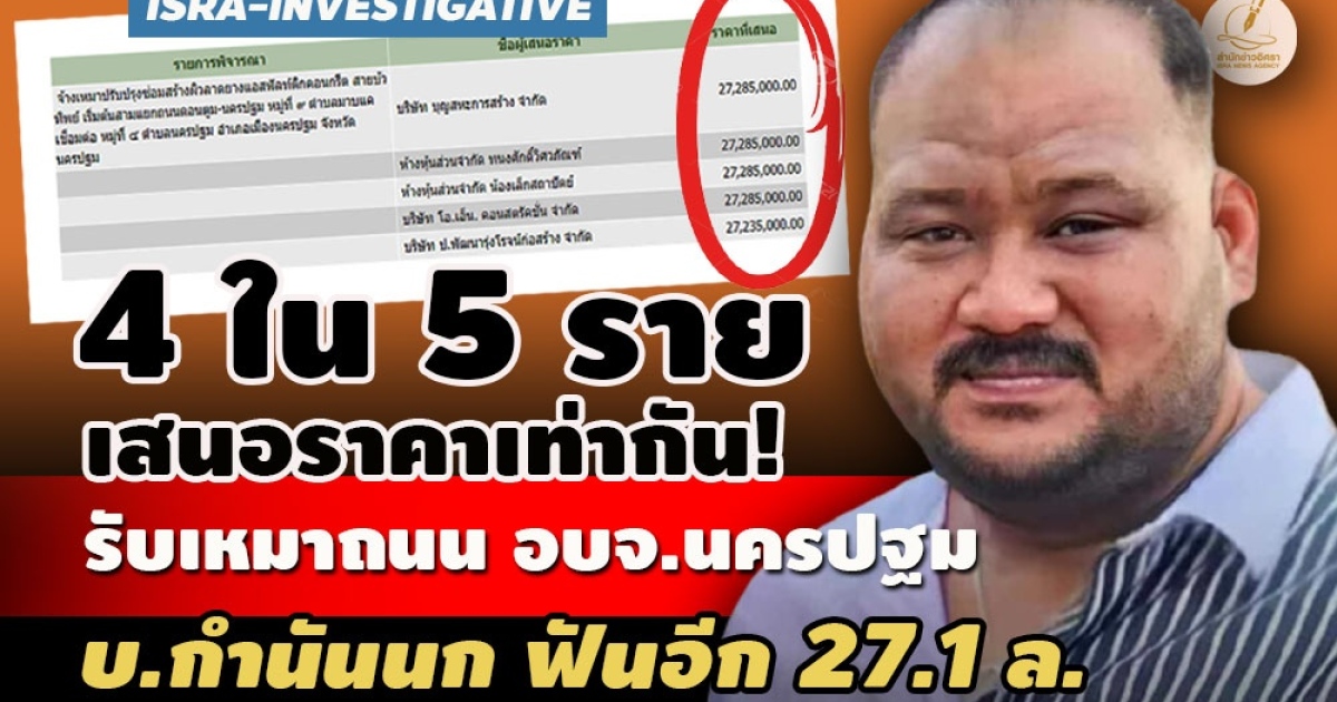 - ไส้ในรับเหมาอีกโครงการ! บ.กำนันนก ฟัน 3 ล. ต่ำกว่าราคากลาง 1.5 ล.