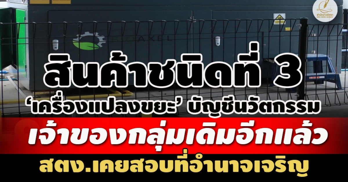 • สินค้าที่ 3 เครื่องแปลงขยะบัญชีนวัตกรรม เจ้าของกลุ่มเดิมอีกแล้ว สตง.เคยสอบที่อำนาจเจริญ