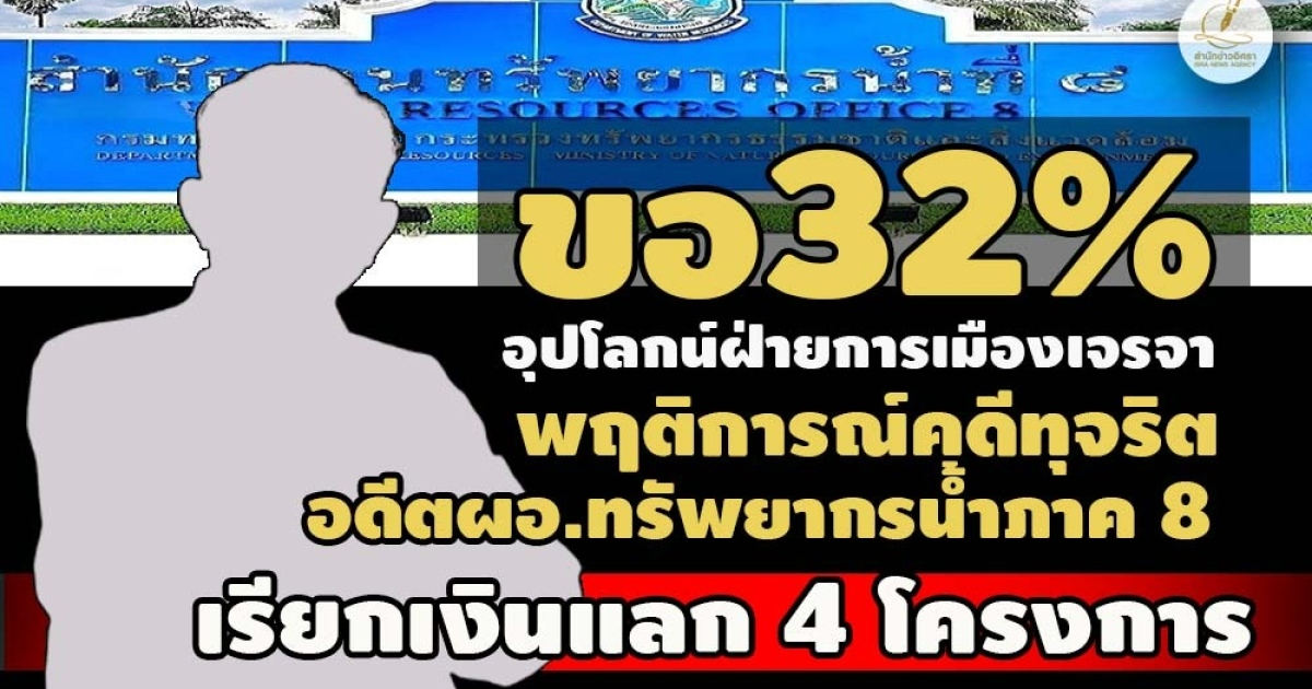 - ไม่รอลงอาญา! คุก 4 ปี อดีตผอ.ทรัพยากรน้ำภาค 8 เรียกรับเงินเอกชน 4 โครงการ