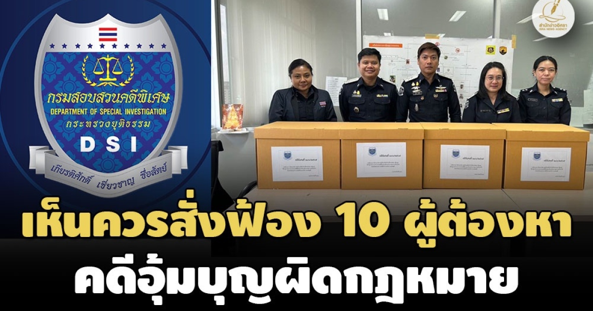 อธิบดี DSI เห็นควรสั่งฟ้อง 10 ผู้ต้องหา คดีอุ้มบุญผิดกฎหมาย ความผิดฐานมีส่วนร่วมในองค์กรอาชญากรรมข้ามชาติฯ พร้อมขอศาลออกหมายจับอีก 6 ราย