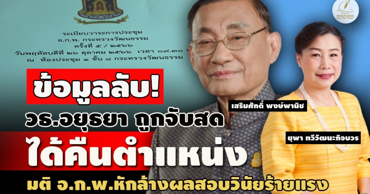- ข่าวจริง! วธ.อยุธยา ถูกจับสดคดีจ้างทิพย์จัดพิธีกรรมฯได้คืนตำแหน่ง-สะพัดแค่ผิดไม่ร้ายแรง
