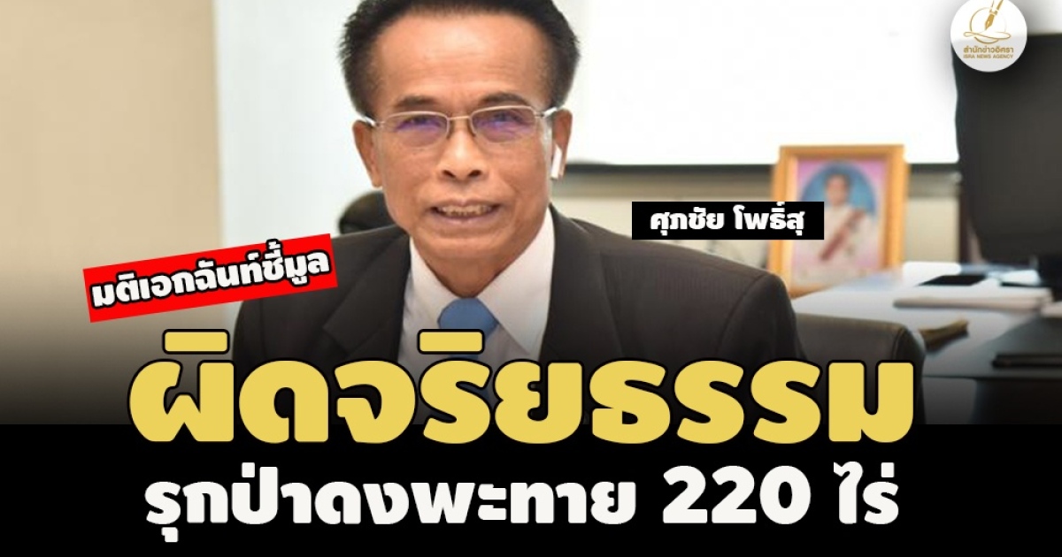 ป.ป.ช.ลงมติเอกฉันท์ชี้มูล 'ศุภชัย โพธิ์สุ' อดีตรมว.เกษตรฯ - สส. ผิดจริยธรรมอย่างร้ายแรง คดีรุกป่าดงพะทาย อ.ท่าอุเทน จ.นครพนม ซื้อที่ดินไม่มีหลักฐานใบจอง 220 ไร่ ให้ส่งสำนวนยื่นฟ้องศาลฎีกาตามขั้นตอนทางกฎหมายต่อไป