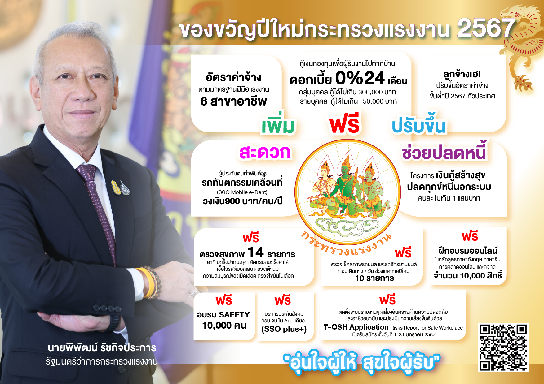 กระทรวงแรงงาน มอบของขวัญปีใหม่ ในแนวคิด 'เพิ่ม ฟรี ปรับขึ้น ช่วยปลดหนี้' อุ่นใจผู้ให้ สุขใจผู้รับ ดังนี้