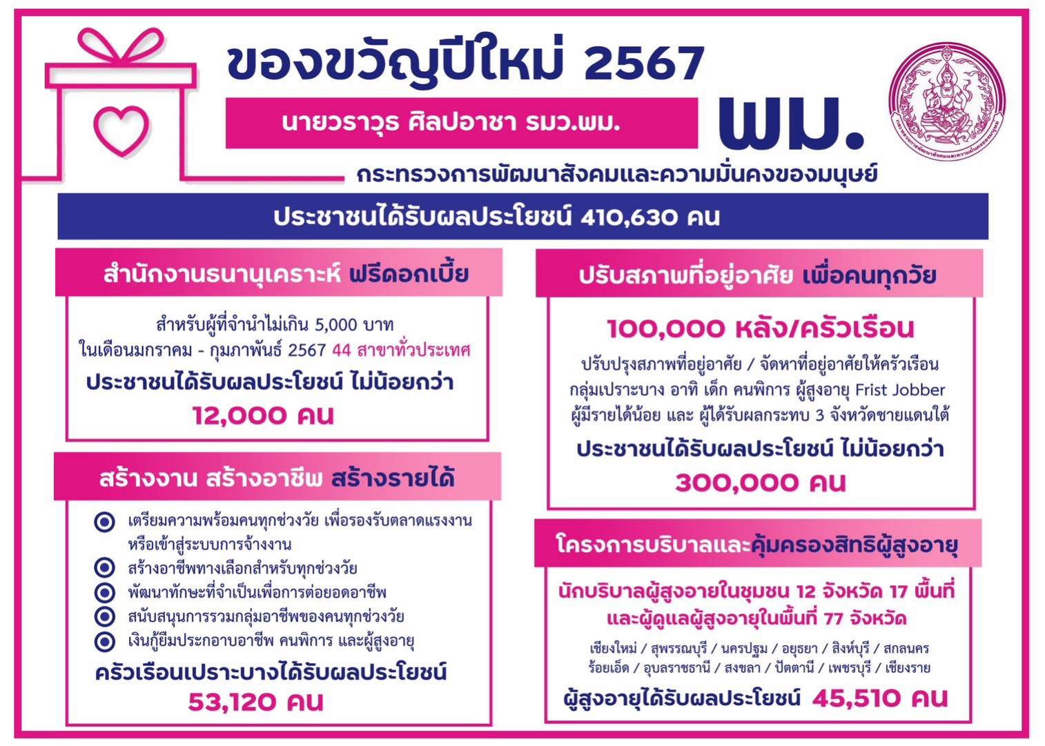โดยหน่วยงานในสังกัด มีการจัดทำมาตรการ/โครงการของขวัญปีใหม่ พ.ศ. 2567 ได้แก่