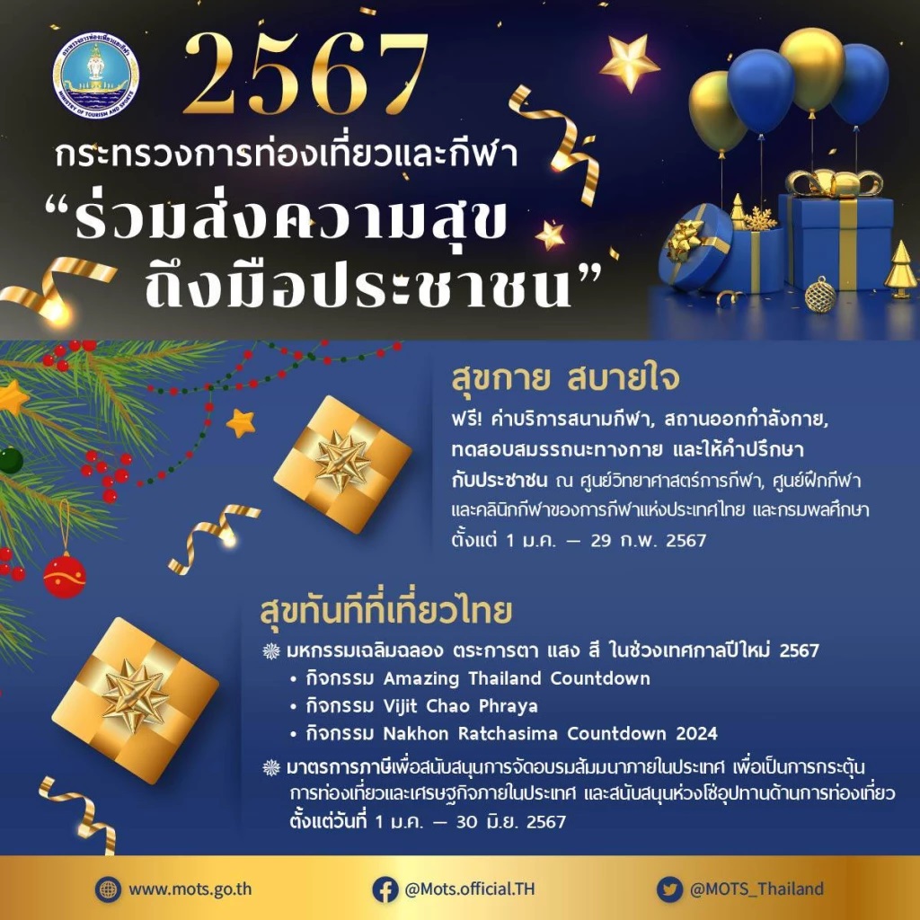 กระทรวงการท่องเที่ยวและกีฬามอบ 'ของขวัญปีใหม่' ให้ประชาชน ส่งสุขส่งท้ายปี 2566 ต้อนรับปี 2567