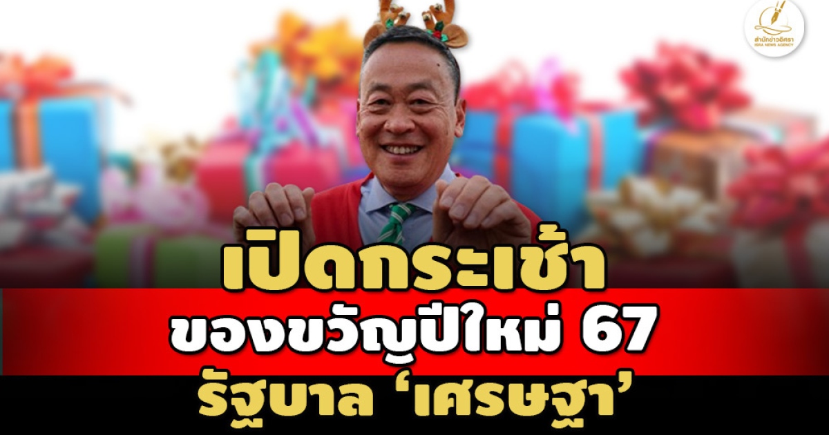 "...นายเศรษฐา ได้กำชับ รัฐมนตรีในที่ประชุม ครม.ให้ออกมาตราการ เพื่อมอบเป็นของขวัญปีใหม่ 2567 ส่งความสุขให้ประชาชนในช่วงวันหยุดยาวที่กำลังจะมาถึง และ ครม.ได้มีมติอนุมัติและรับทราบมาตรการและแผนการดำเนินการของรายกระทรวง..."