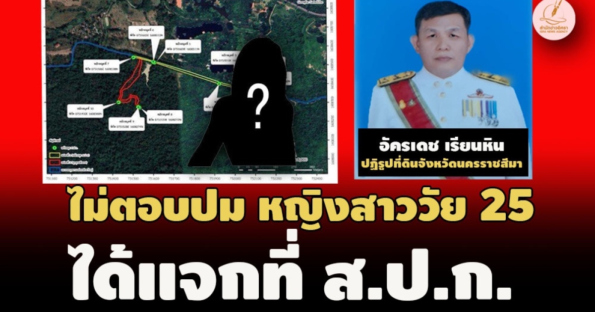 'อัครเดช เรียนหิน' ปฏิรูปที่ดินโคราช ยังไม่ตอบปม 'อิศรา' คุ้ยเจอ 'หญิงสาว' ได้แจก ส.ป.ก.จุดพิพาทแนวเขตอุทยานฯเขาใหญ่ แจ้งอายุ 25-โสด-อยู่มวกเหล็ก อ้างถูกย้ายเข้ามาที่ส่วนกลางแล้วก่อนวางสายไปติดต่อไม่ได้อีก เผยมีชื่อได้รับคัดเลือกทั้ง 2 บัญชี