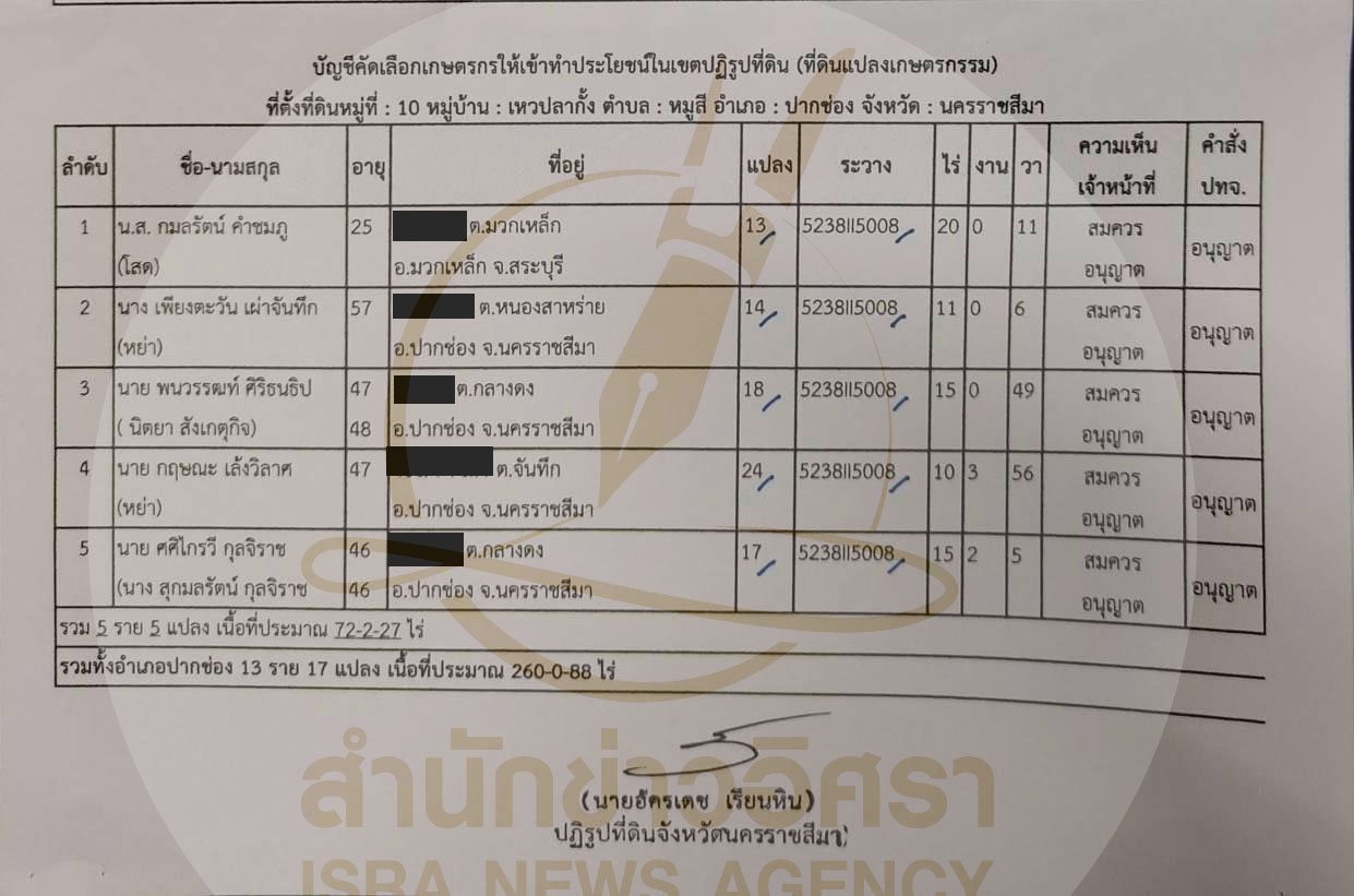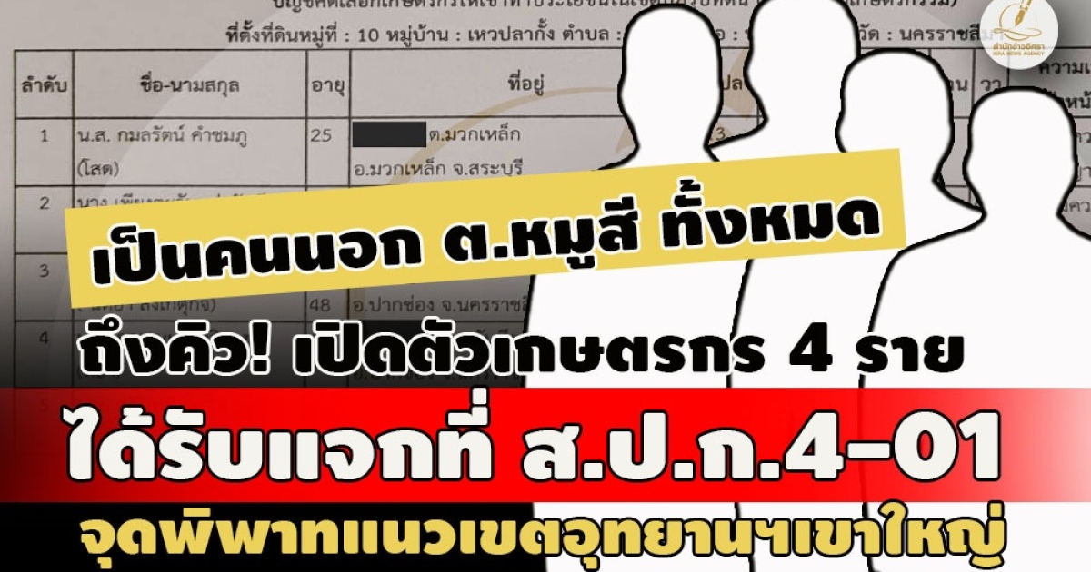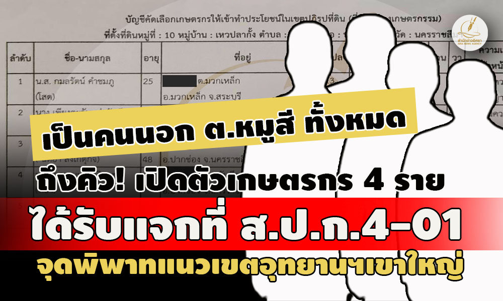 • ถึงคิว! เปิดข้อมูลเกษตรกร 4 ราย อยู่นอก ต.หมูสี ได้ที่ ส.ป.ก.จุดพิพาทแนวเขตอุทยานฯเขาใหญ่