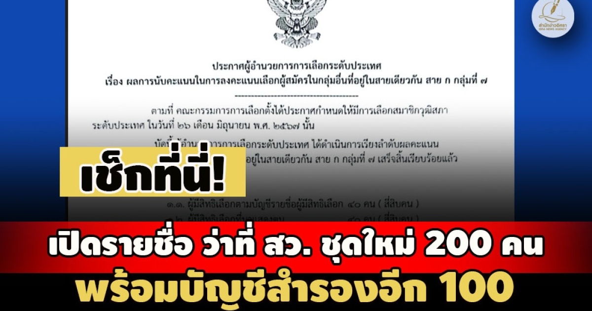 ใครเป็นใคร! ดูได้ที่นี่ กกต.ประกาศผลการเลือก สว. ระดับประเทศ ได้ครบแล้ว ว่าที่ สว. ชุดใหม่ 200 คน พร้อมบัญชีรายชื่อสำรองอีก 100
