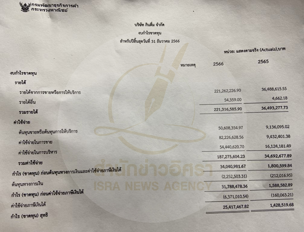 เปรียบเทียบตัวเลข 2 ปี รอบปี 2566 รายได้มากกว่ารอบปี 2565 จำนวน 184,823,308.17 บาท หรือ ประมาณ 6 เท่า กำไรสุทธิสูงกว่าปี 2565 จำนวน 23,988,948.14 บาท หรือประมาณ 17.89 เท่าตัว (ดูเอกสารท้ายเรื่อง )