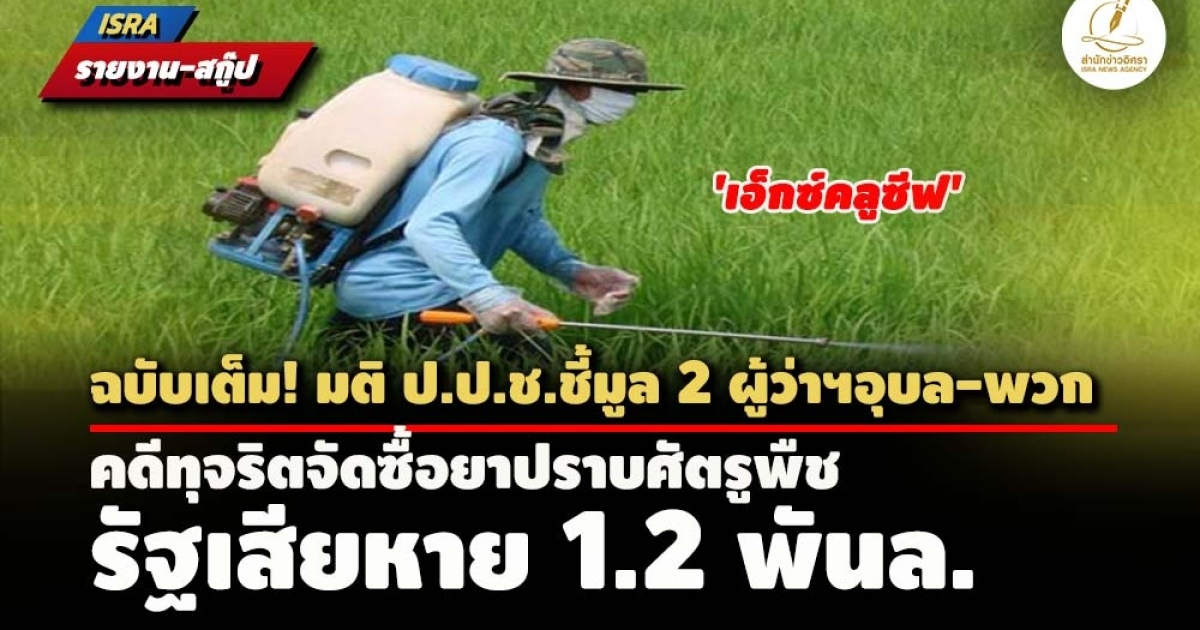 หากสาธารณชนยังจำกันได้ ในช่วงเดือน พ.ย.2565 สำนักข่าวอิศรา (www.isranews.org) เคยนำเสนอข่าวไปแล้วว่า ที่ประชุมคณะกรรมการป้องกันและปราบปรามการทุจริตแห่งชาติ (ป.ป.ช.) มีมติชี้มูลความผิดผู้ถูกกล่าวหาในคดีจัดซื้อสารเคมีป้องกันและกำจัดศัตรูพืช เพื่อช่วยเหลือผู้ประสบภัยพิบัติฉุกเฉิน (ด้านพืช) ในพื้นที่จังหวัดอุบลราชธานี จำนวน 3 สำนวน คือ