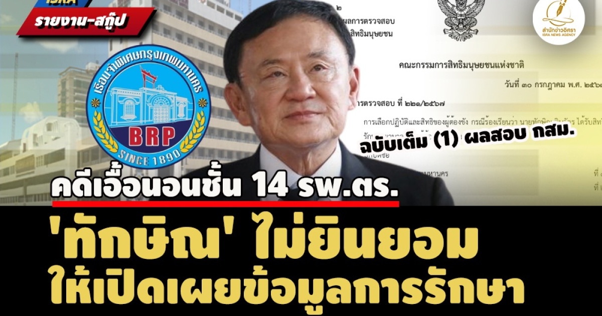 2.6) ผู้ถูกร้องที่ 2 ไม่สามารถเปิดเผยข้อมูลด้านสุขภาพของนายทักษิณได้ เนื่องจากเป็นข้อมูลที่ต้องปกปิดเป็นความลับ ประกอบกับนายทักษิณได้แสดงเจตนาไว้ในหนังสือ ลงวันที่ 23 สิงหาคม 2566 ไม่ยินยอมให้สถานพยาบาลเปิดเผยข้อมูล/ส่งข้อมูล หรือสำเนาข้อมูลเกี่ยวกับการรักษาพยาบาลของตน ทั้งนี้ ตามพระราชบัญญัติสุขภาพแห่งชาติ พ.ศ. 2550 และพระราชบัญญัติคุ้มครองข้อมูลส่วนบุคคล พ.ศ. 2562 อีกทั้งรายงานทางการแพทย์เป็นข้อมูลข่าวสารส่วนบุคคลซึ่งการเปิดเผยจะเป็นการรุกล้ำสิทธิส่วนบุคคลโดยไม่สมควร ตามพระราชบัญญัติข้อมูลข่าวสารของราชการ พ.ศ. 2540