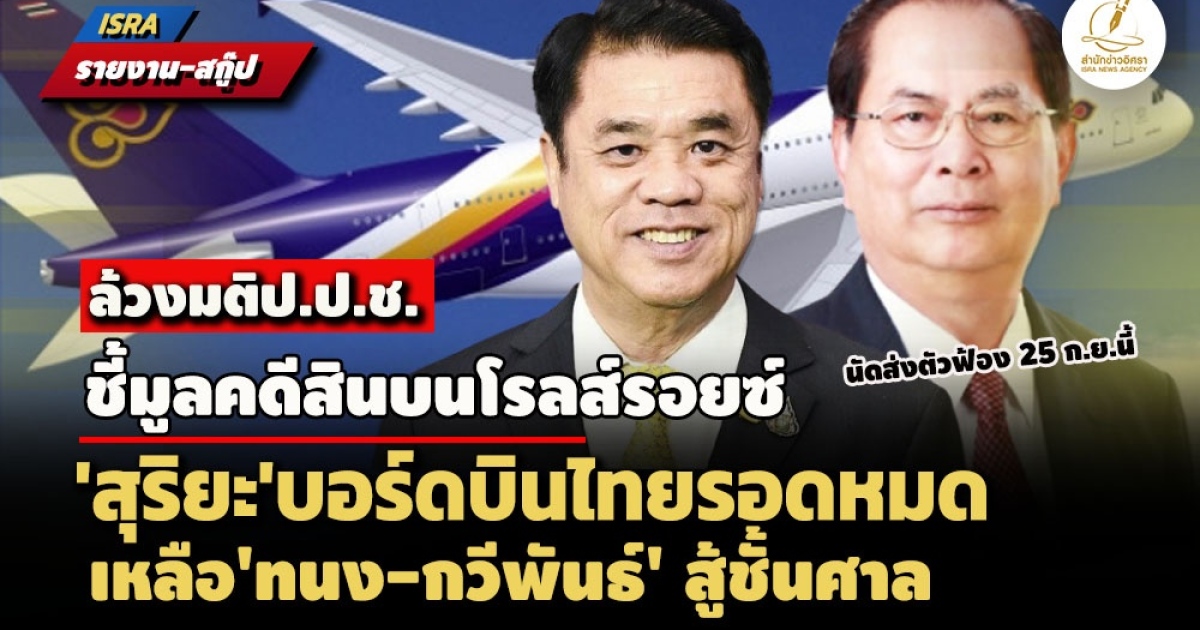 - หลังอสส.ตีกลับสำนวน! ป.ป.ช.ฟ้องเองคดีสินบนโรลส์รอยซ์ นัด'ทนง-พวก'รายงานตัวศาลฯ 25 ก.ย.