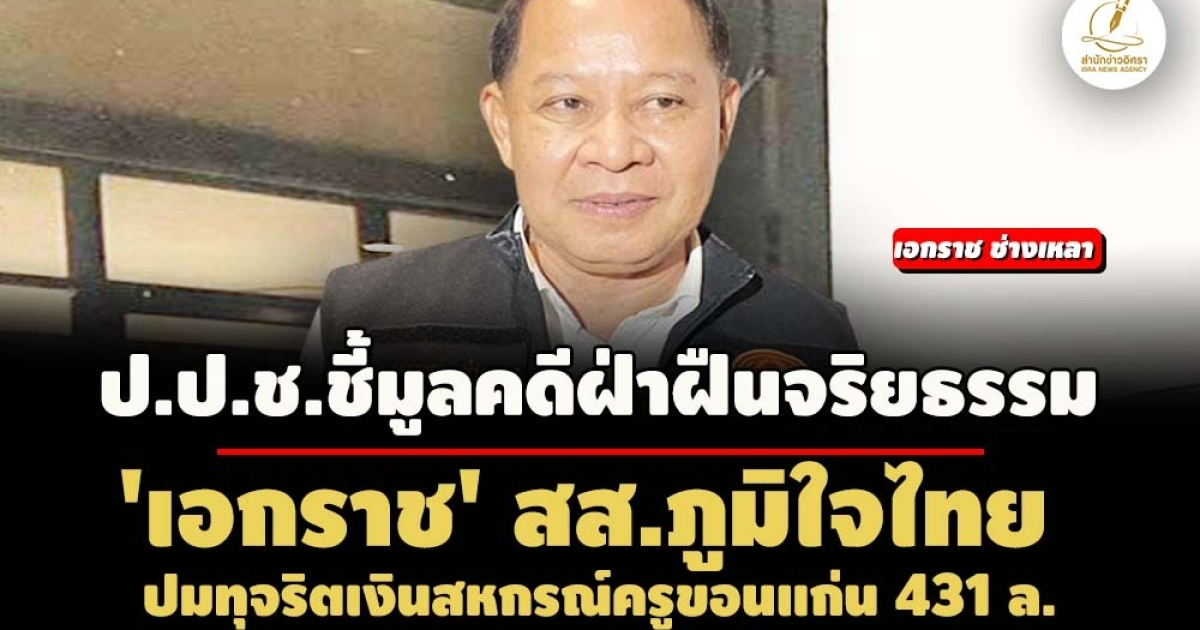 - ป.ป.ช.ตั้งไต่สวน'เอกราช' ส.ส.ภูมิใจไทย คดีจริยธรรมปมทุจริตเงินสหกรณ์ครูฯ 431 ล.