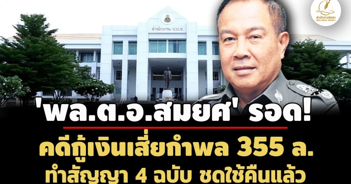 เผยมติ ป.ป.ช.ตีตกคดี 'พล.ต.อ.สมยศ พุ่มพันธ์ม่วง' อดีตสนช.-ผบ.ตร. กู้ยืมเงิน 355 ล้าน เจ้าของอาบอบนวดวิคตอเรียซีเครท ไม่เข้าข่ายรับทรัพย์สิน มาตรา 103 ข้อกล่าวหาตกไป หลังพบทำสัญญา 4 ฉบับ ชดใช้คืนแล้ว - 'เสี่ยกำพล วิระเทพสุภรณ์' หนีออก นอกปท. เรียกตัวสอบปากคำไม่ได้