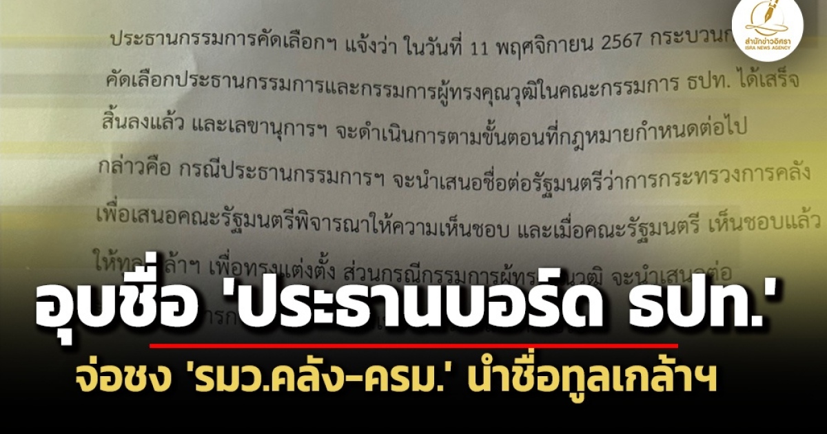 • คณะกก.คัดเลือก ฯ อุบชื่อ ประธานบอร์ด ธปท.-ไม่ให้สัมภาษณ์-แจกข่าวกระดาษแผ่นเดียว