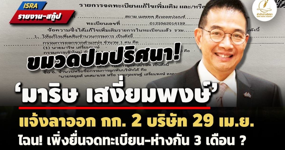 • ขมวดปม ‘มาริษ’ แจ้งลาออก กก. 2 บ. 29 เม.ย. ไฉน!เพิ่งยื่นจดทะเบียน-ห่างกัน 3 เดือน ?
