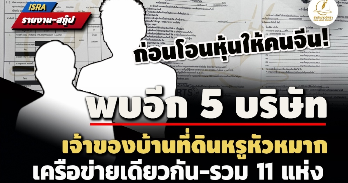 สรุป-ถ้าย้อนไปดูข้อมูลที่สำนักข่าวอิศรารายงานก่อนหน้านี้ จำนวน 6 บริษัทที่พบความเชื่อมโยงกันทั้งหมด (เรื่องเกี่ยวข้อง: ขุดสุดลึก 6 บ.เจ้าของบ้านที่ดินหรูย่านหัวหมาก กลุ่มเดียวกันจัดตั้ง ก่อนโอนหุ้นให้คนจีน) หากรวมอีก 5 บริษัทข้างต้น เท่ากับผู้ถือกรรมสิทธิ์ที่ดินอย่างน้อย 11 บริษัท มีความเชื่อมโยงในลักษณะเครือข่ายเดียวกันทั้งหมด ก่อนโอนหุ้นให้กลุ่มบุคคลสัญชาติจีน ไม่นับรวมแปลงอื่น