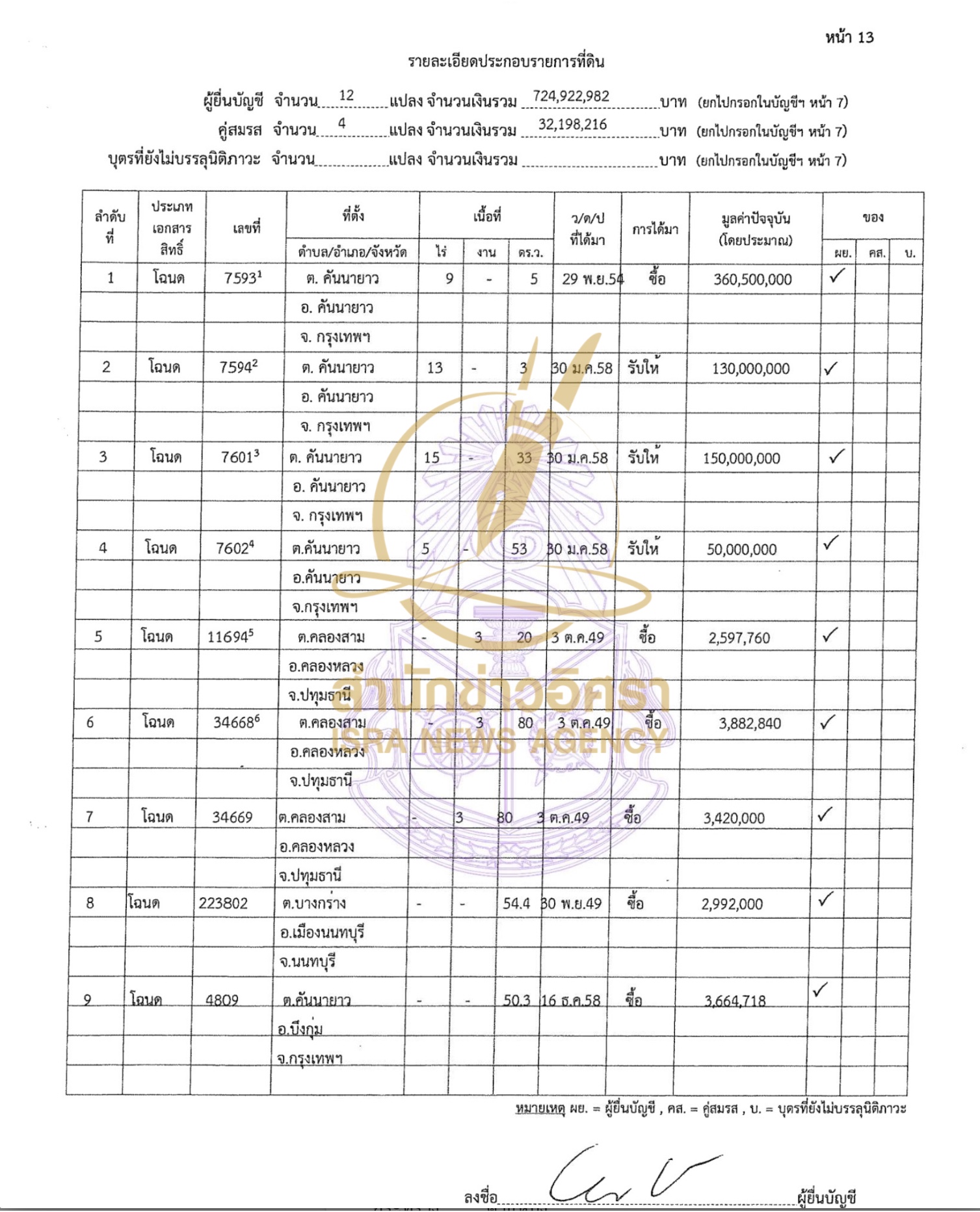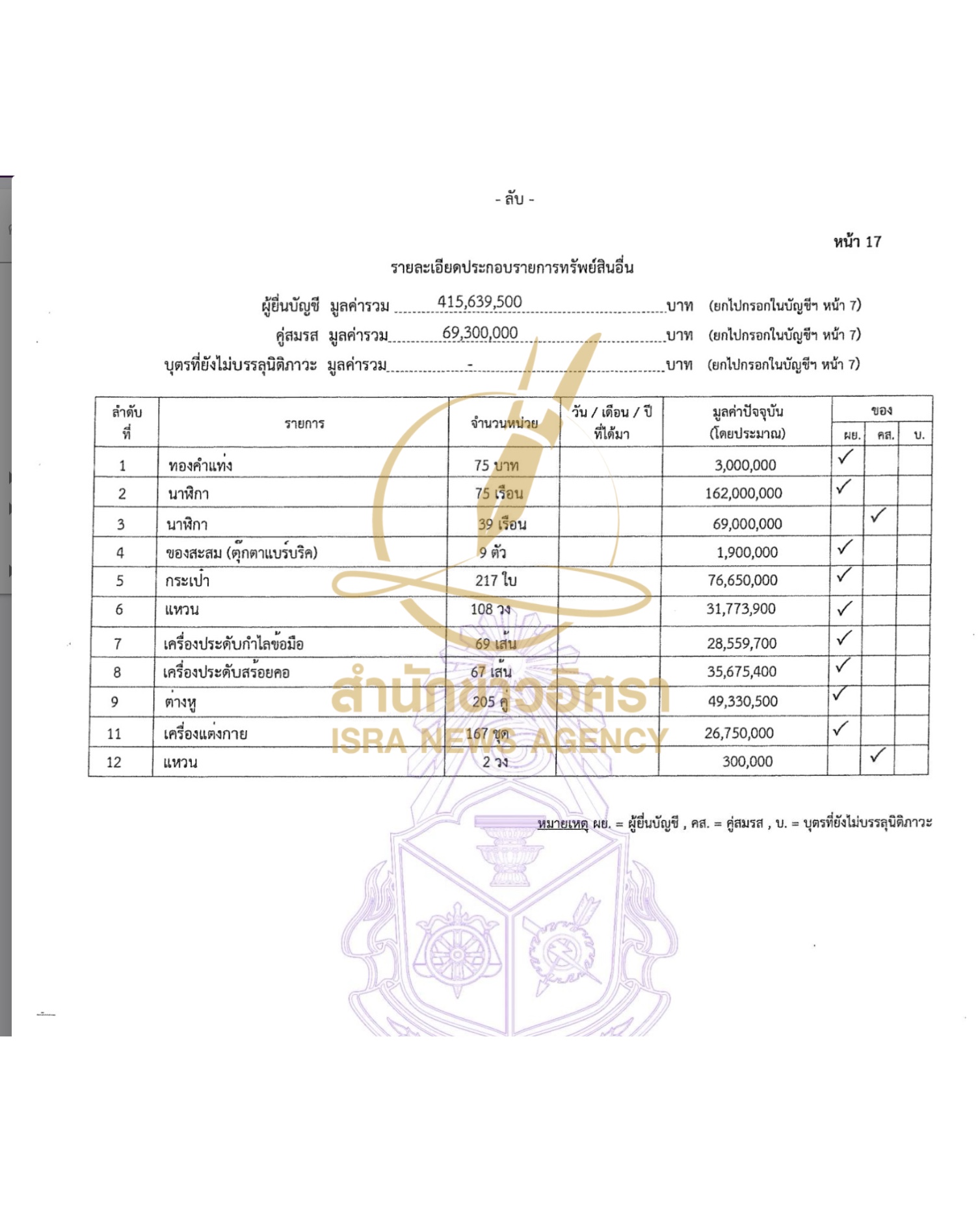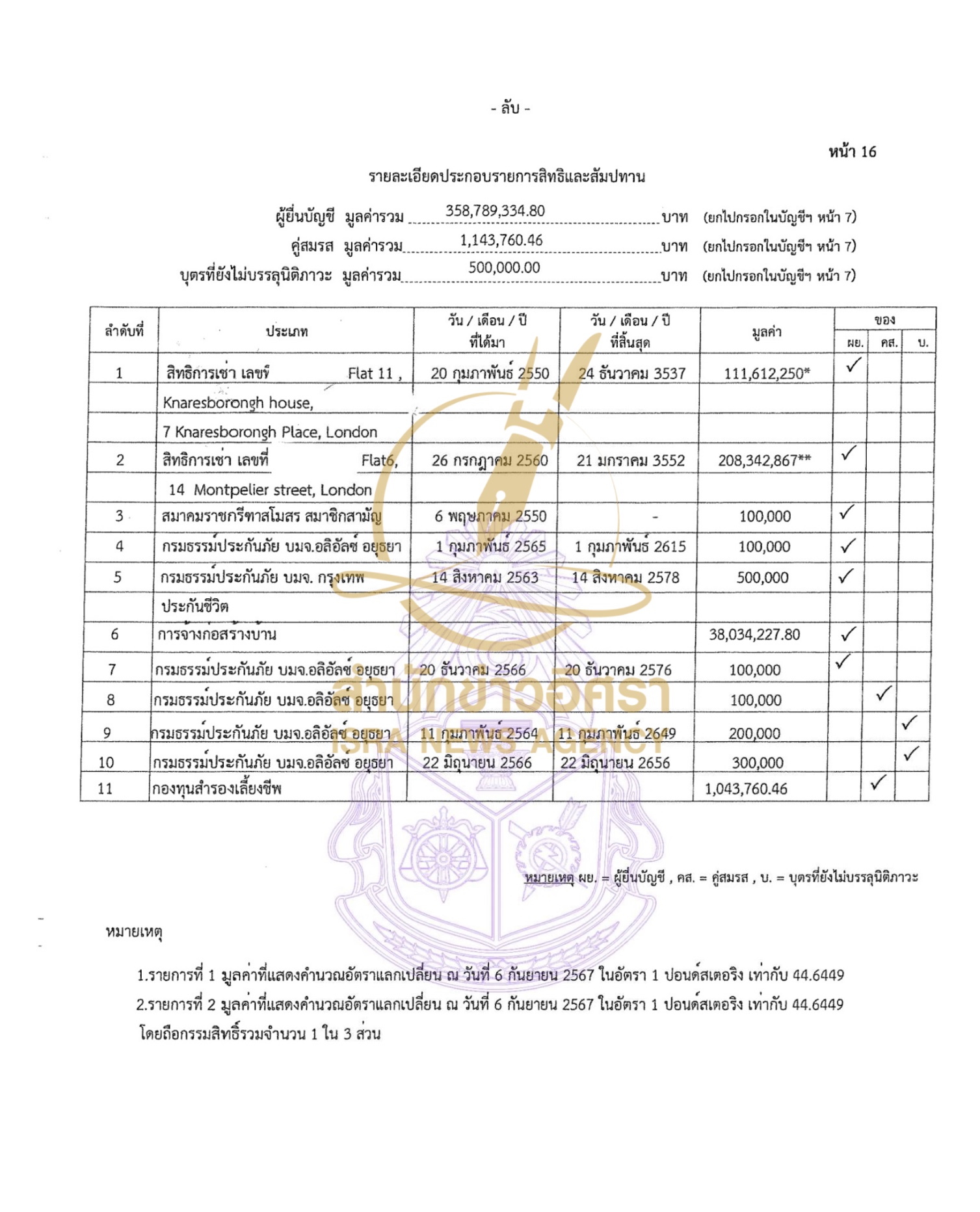 บุตรที่ยังไม่บรรลุนิติภาวะ แจ้งมีทรัพย์สิน 500,000 บาท ทั้งหมดเป็นสิทธิและสัมปทาน