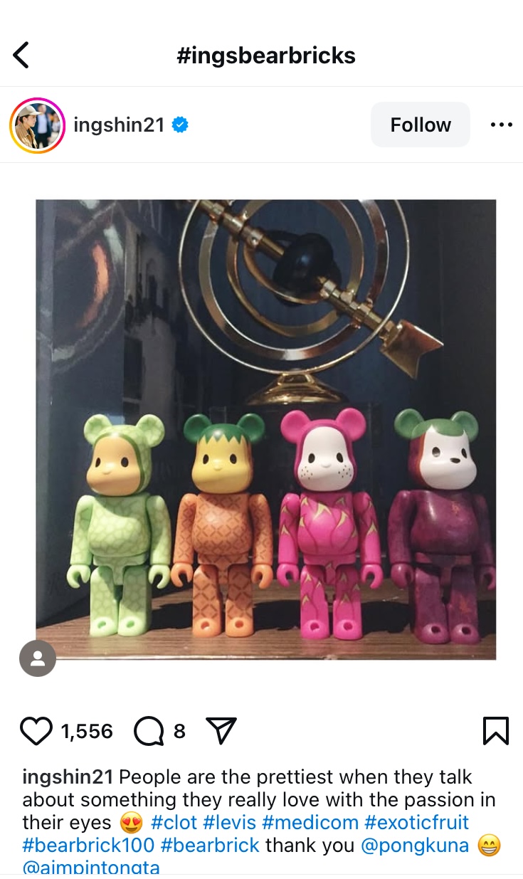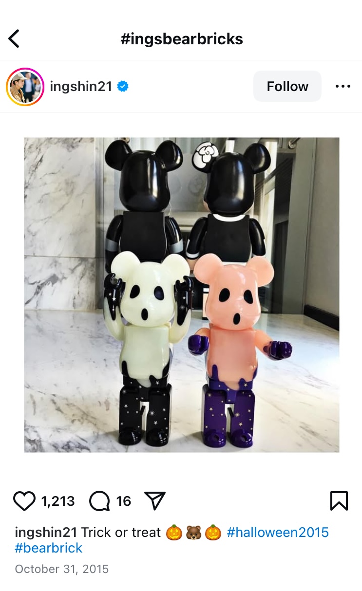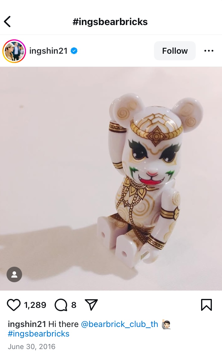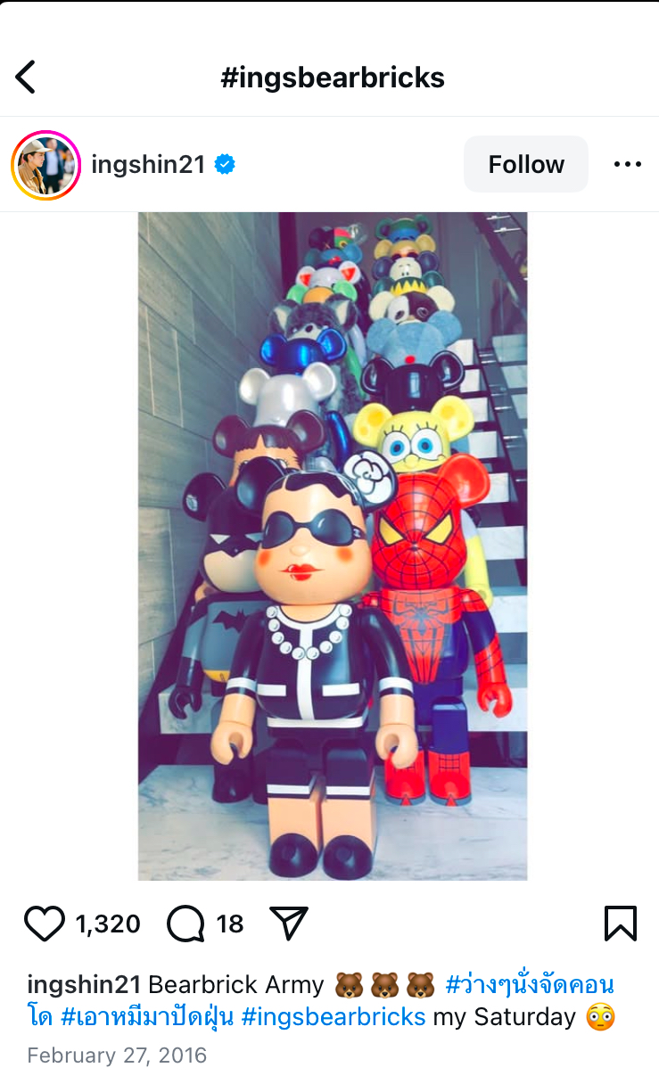 เหล่านี้ คือ ข้อมูลเกี่ยวกับตุ๊กตาแบร์บริคของเล่นสะสมของ น.ส.แพทองธาร นายกรัฐมนตรี ที่สำนักข่าวอิศรา พอจะสืบค้นได้ผ่าน Instagram ส่วนตัว Ingshin21 #ingsbearbrick และเฟซบุ๊ก ตั้งแต่ช่วงปี 2558 ที่ผ่านมา