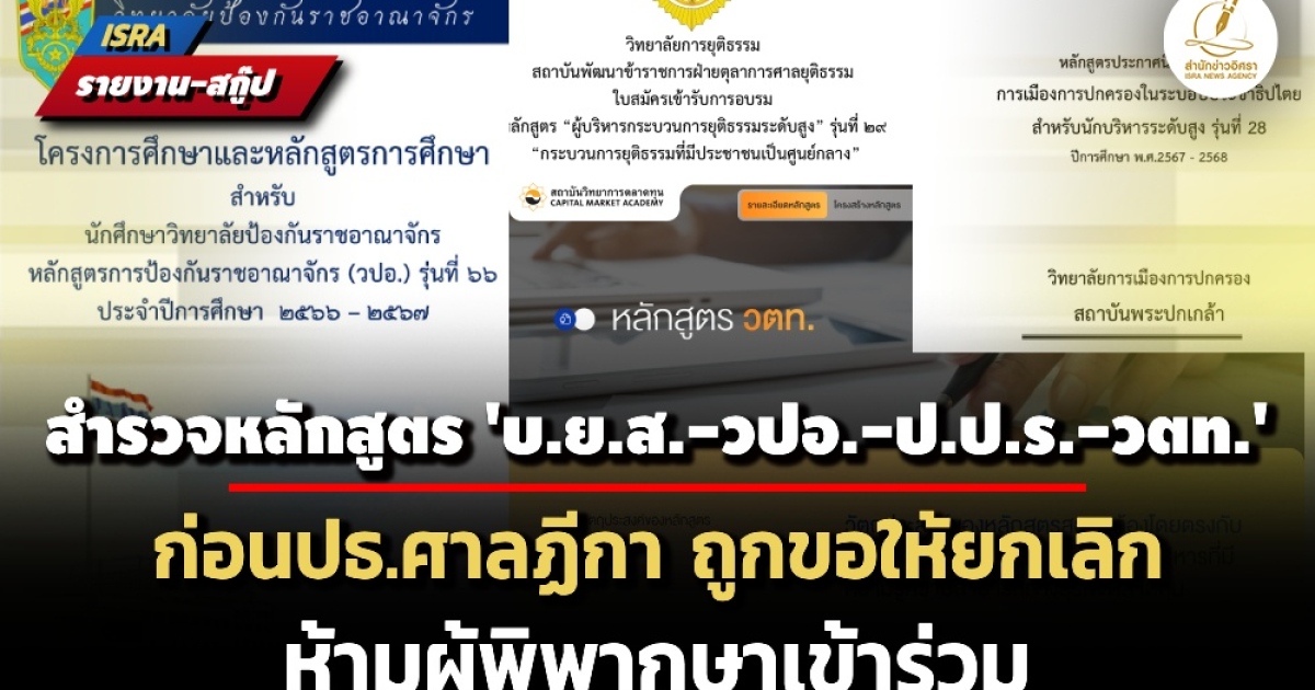 เพื่อให้สาธารณชนรับทราบข้อมูลเกี่ยวกับกรณีนี้มากขึ้น สำนักข่าวอิศรา ย้อนนำข้อมูลหลักสูตรผู้บริหารกระบวนการยุติธรรมระดับสูง (บ.ย.ส.) , หลักสูตรการป้องกันราชอาณาจักร (ว.ป.อ.) , หลักสูตรการเมืองการปกครองในระบอบประชาธิบไตยสำหรับนักบริหาระดับดับสูง (ป.ป.ร.) และหลักสูตรผู้บริหารระดับสูงสถาบันวิทยาการตลาดทุน (วตท.) ถึงที่มาที่ไป วัตถุประสงค์การจัดอบรม มานำเสนอให้สาธารณชนได้ทราบ ณ ดังนี้