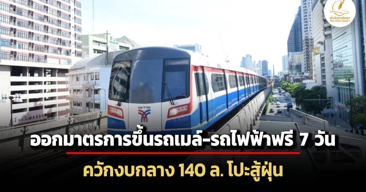 นายสุริยะ กล่าวต่อว่า ล่าสุดได้เจรจากับผู้ประกอบการด้านรถไฟฟ้า ที่ให้บริการประชาชน เป็นที่เรียบร้อยแล้ว ซึ่งได้แก่ บริษัท บีทีเอส กรุ๊ป โฮลดิ้งส์ จํากัด (มหาชน) และ บริษัท ทางด่วนและรถไฟฟ้ากรุงเทพ จำกัด (มหาชน) โดยจะให้ประชาชน ได้ใช้บริการรถไฟฟ้าฟรีทุกสาย ในระยะ 7 วัน ตั้งแต่วันที่ 25 มกราคม ถึง 31 มกราคม 2568 สำหรับรายได้ของทางเอกชนที่สูญเสียไปนั้น ทางรัฐบาลจะชดเชยตามค่าเฉลี่ย 7 วัน รวมประมาณ 140 ล้านบาท โดยมาจากงบกลาง