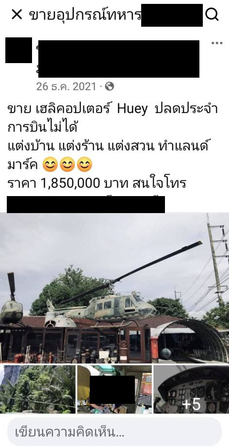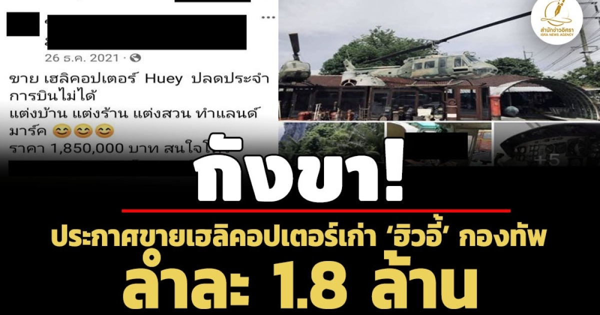 • กังขา! ประกาศขายเฮลิคอปเตอร์เก่ากองทัพ ลำละ 1.8 ล. - เจ้าของเพจแจงประมูลมาถูกต้อง