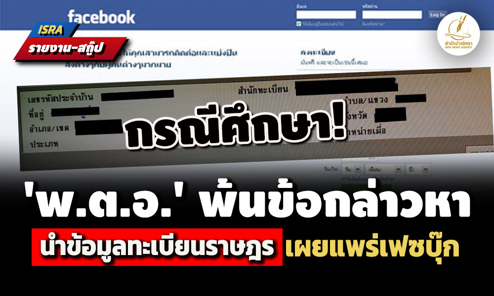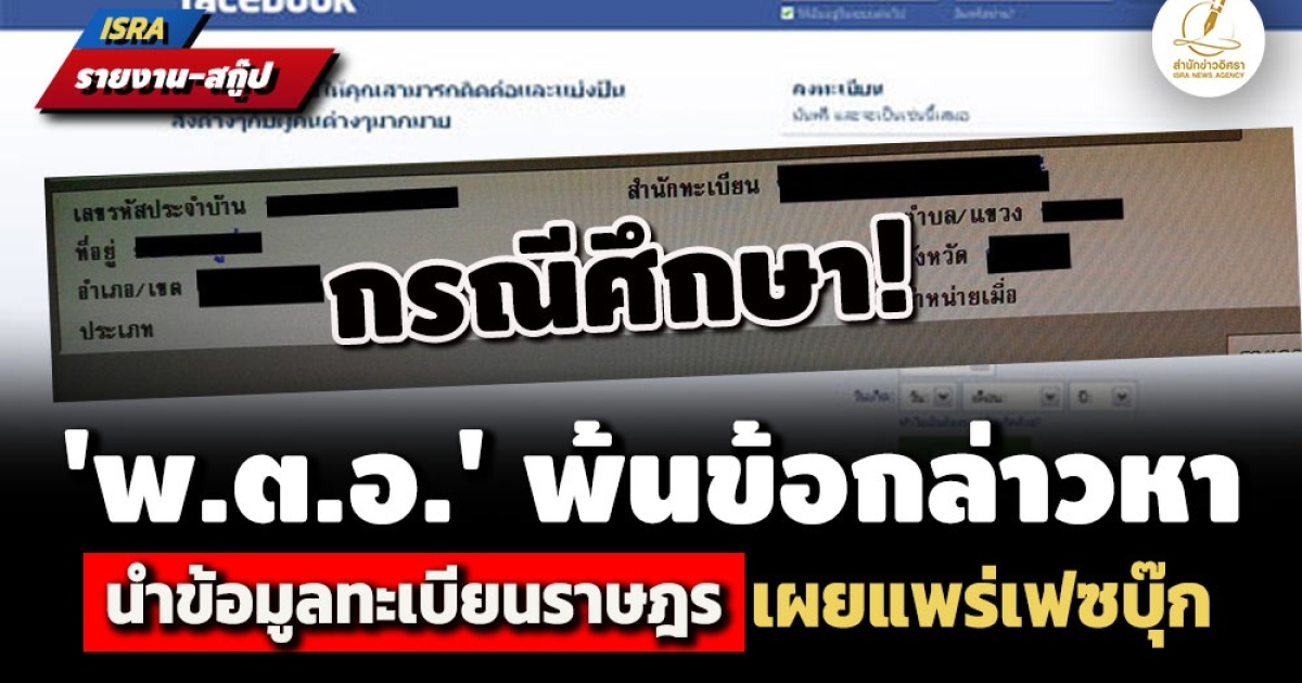 กรณีที่ผู้ถูกกล่าวหาถูกกล่าวหาว่าได้นําข้อมูลทะเบียนราษฎรของผู้กล่าวหาอันปรากฏข้อมูลภาพใบหน้า ชื่อ - สกุล เลขประจำตัวประจำตัวประชาชน วันเดือนปี ที่อยู่ ชื่อบิดา - มารดา เลขประจำตัวประชาชนของบิดา - มารดา ของผู้กล่าวหา ไปเผยแพร่ในเครือข่ายทางสังคมออนไลน์เฟชบุ๊กชื่อ XXX โดยระบุข้อความว่า "เพื่อนผมบอกมาบุคคลนี้ต้องสงสัยกระทำความผิด ใครมีข้อมูลคนคนนี้ ช่วยแจ้งด้วย ครับ" นั้น