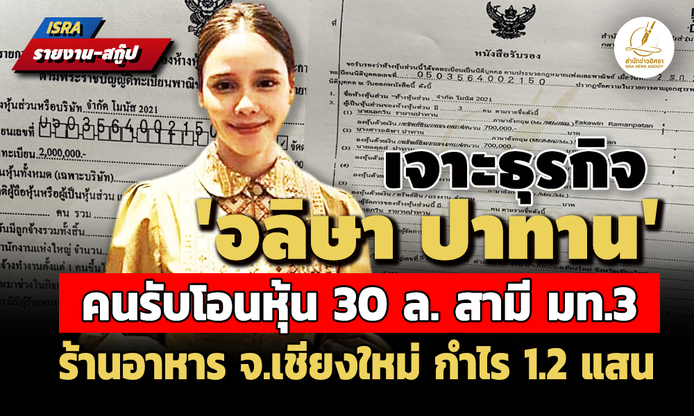 - เจาะธุรกิจ ‘อลิษา’ คนรับโอนหุ้น 30 ล. สามี มท.3 ร้านอาหาร จ.เชียงใหม่ กำไร 1.2 แสน