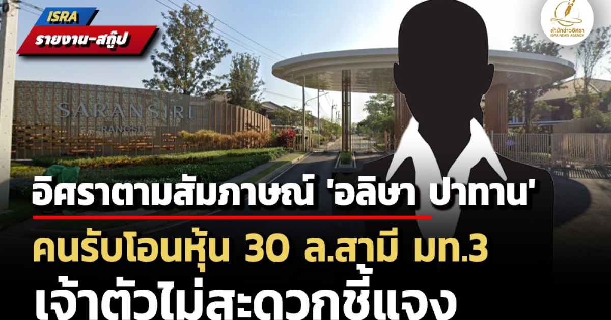 ทั้งหมดนี้ คือ ข้อมูลเกี่ยวกับการลงพื้นที่ไปติดต่อ นางสาวอลิษา ปาทาน เพื่อสอบถามข้อเท็จจริงกรณีการรับโอนหุ้นบริษัท สิงห์เมืองอุทัย 9 จำกัด จำนวน 30,000 หุ้น มูลค่า 30 ล้านบาท จาก นายอนันต์ ปาทาน สามี นางสาวซาบีดา ไทยเศรษฐ์ รัฐมนตรีช่วยว่าการกระทรวงมหาดไทย ก่อน นางสาวซาบีดา ภรรยาได้รับแต่งตั้งเป็นรัฐมนตรีช่วยว่าการกระทรวงมหาดไทย เมื่อวันที่ 4 ก.ย.2567 ประมาณ 2 วัน ของสำนักข่าวอิศรา