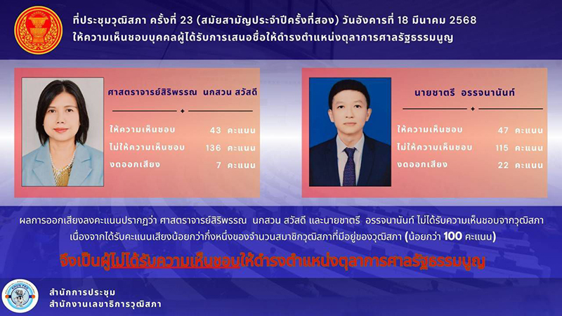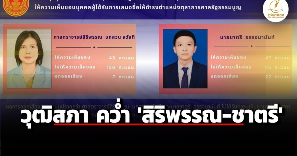 • วุฒิสภา ตีตก ‘สิริพรรณ-ชาตรี’ ไม่เห็นชอบ นั่ง ตุลาการศาลรัฐธรรมนูญ