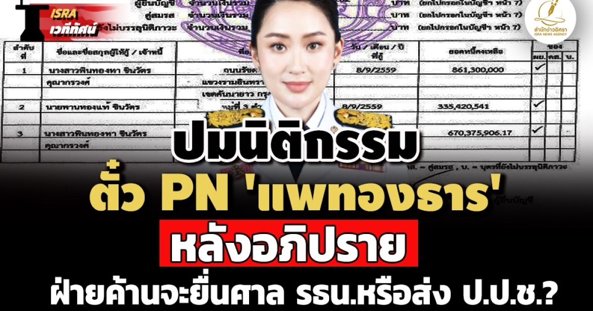 - ‘แพทองธาร' : ตั๋วสัญญาใช้เงิน 4,400 ล.หนี้ปลอม? นิติกรรมอำพราง? เจริญรอยตามผู้พ่อหรือไม่’