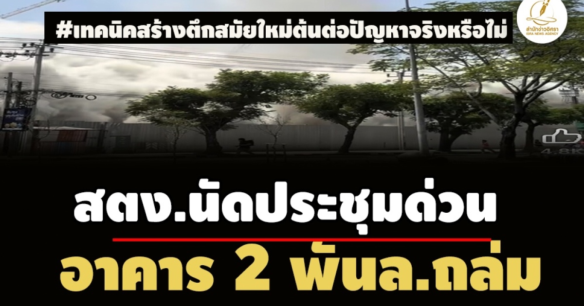 สตง.นัดประชุมด่วนปัญหาตึกอาคารสนง.แห่งใหม่ 2 พันล้าน พังถล่ม เผยมีถกข้อมูลสำคัญเทคนิคก่อสร้างสมัยใหม่แบบพื้นไร้คาน-อาศัยเสาค้ำพื้นของบริษัทจีน คู่สัญญา มีประสิทธิภาพจริงหรือไม่ หลังเกิดกระแสวิพากษ์วิจารณ์ในจีนชี้ต้านทานต่อแผ่นดินไหวไม่พอ