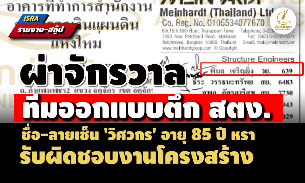 - ดีเอสไอได้ชื่อวิศวกรออกแบบตึก สตง.แล้วอายุ 85 ปี -ยังไม่เจอตัว3ผู้ถือหุ้นไทยบ.ไชน่าฯ