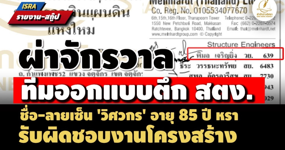 "...สำนักข่าวอิศรา (www.isranews.org) ย้อนกลับไปตรวจสอบข้อมูลแบบก่อสร้างอาคาร สตง. พบหลักฐานยืนยันว่า นายพิมล เจริญยิ่ง วิศวกร อายุ 85 ปี ผู้นี้ เป็นหนึ่งในทีมวิศกรที่ร่วมลงนามในแบบก่อสร้างอาคาร สตง. จริง โดยปรากฏชื่ออยู่ในทีมวิศวกรโครงสร้างของ บริษัท ไมนฮาร์ท (ประเทศไทย) จำกัด ..."