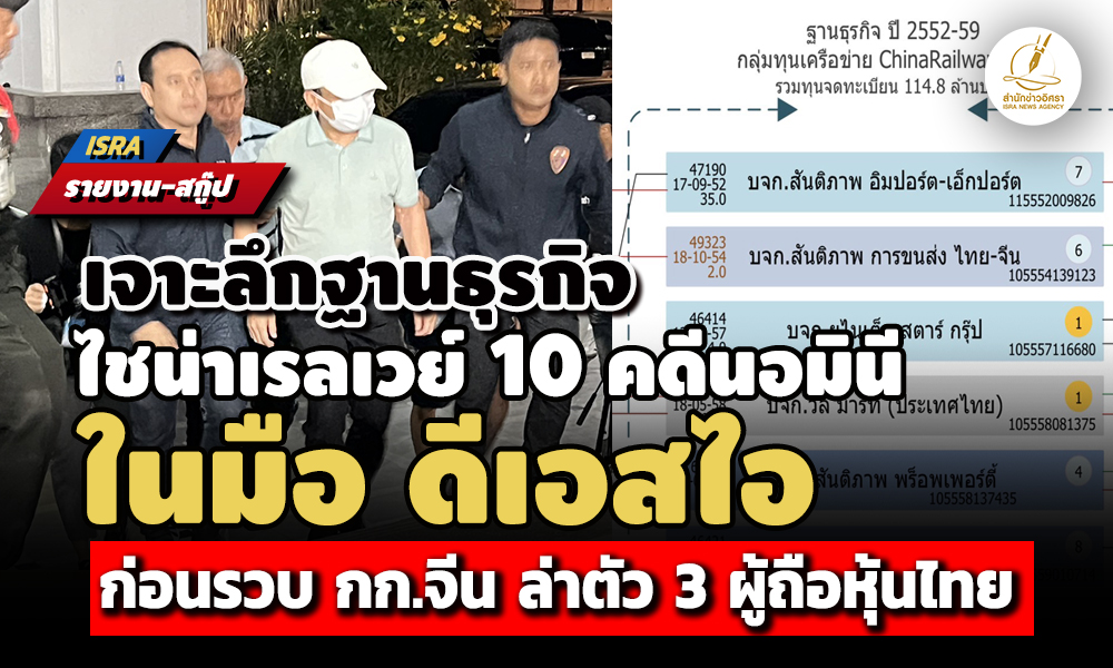 เหล่านี้ คือ ข้อมูลฐานธุรกิจบริษัท ไชน่า เรลเวย์ นัมเบอร 10 (ประเทศไทย) จำกัด และกลุ่มเอกชนในเครือข่าย ที่อยู่ในมือของดีเอสไอแล้ว