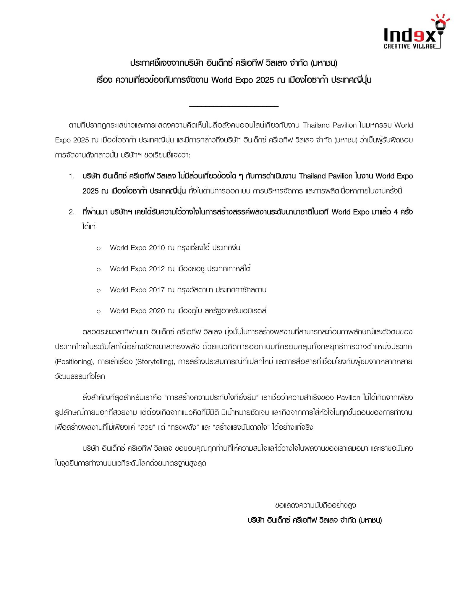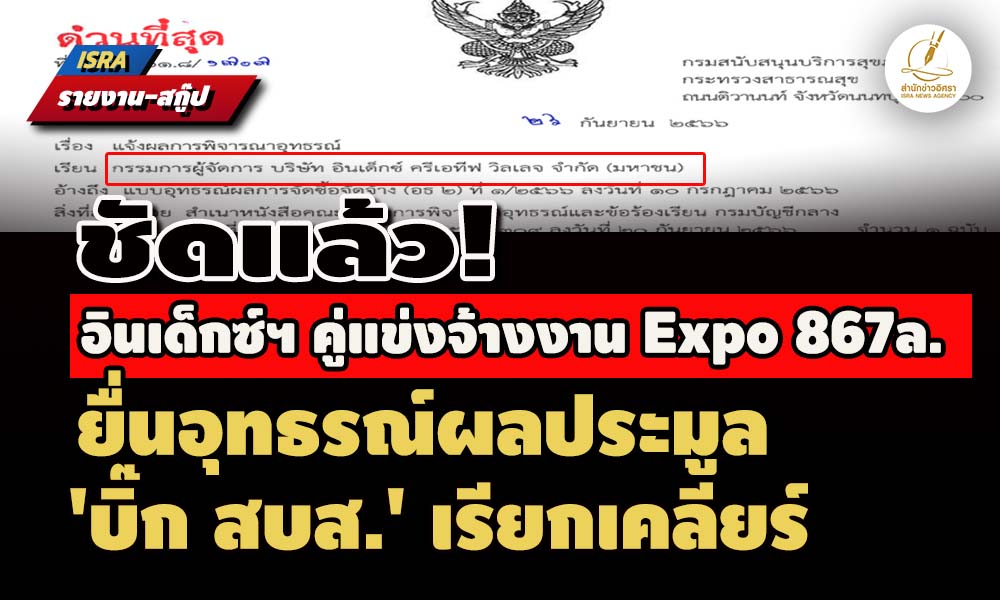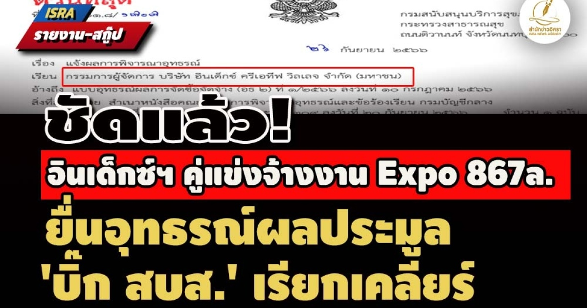 • ชัดแล้ว! อินเด็กซ์ฯ คู่แข่งจ้างงาน Expo 867ล.ยื่นอุทธรณ์ผลประมูล 'บิ๊ก สบส.' เรียกเคลียร์