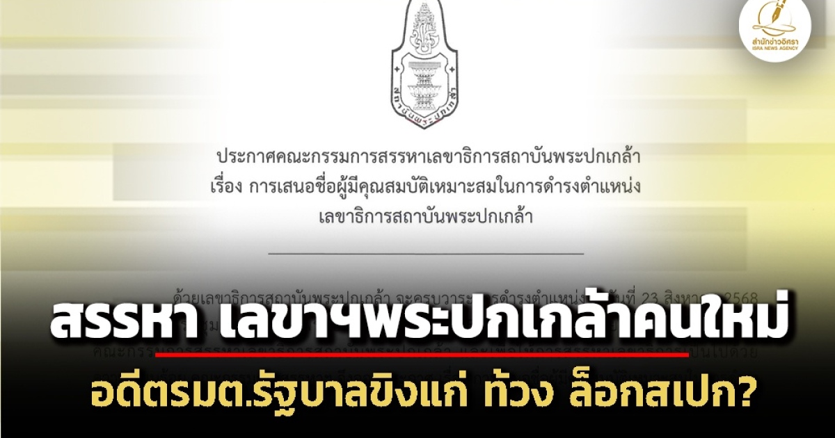 • อดีตรมต. ยุค ‘รัฐบาลขิงแก่’ ตั้งคำถาม สรรหา ‘เลขาฯพระปกเกล้าคนใหม่’ ล็อกสเปกหรือไม่