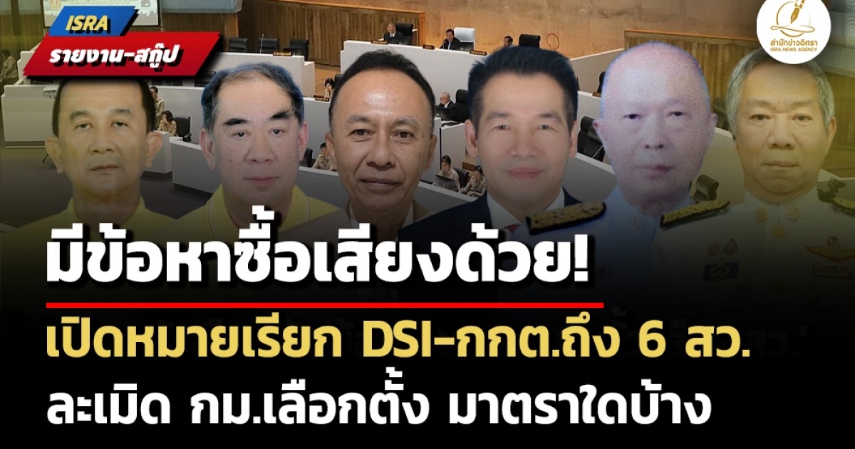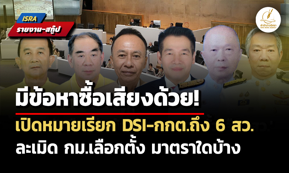หมายเหตุ สำนักข่าวอิศรา (www.isranews.org) วันที่ 9 พฤษภาคม 2568 กรมสอบสวนคดีพิเศษ (DSI) และคณะกรรมการการเลือกตั้ง (กกต.) ได้ลงพื้นที่เพื่อนำเอกสารหมายเรียกผู้ต้องหาคดีสมาชิกวุฒิสภา (สว.) ที่เข้าข่ายทำผิดตามพระราชบัญญัติประกอบรัฐธรรมนูญ (พ.ร.ป.)การได้มาซึ่งสมาชิกวุฒิสภา พ.ศ. 2561 ในพื้นที่กรุงเทพฯ ประกอบด้วย