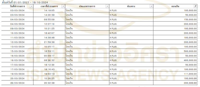 มีรายการโอนเงินมากกว่า 50,000 บาทต่อรายการ ในช่วงปี 2566 - 2567 จำนวนมากหลายรายการ (ดูภาพตัวอย่างประกอบ)