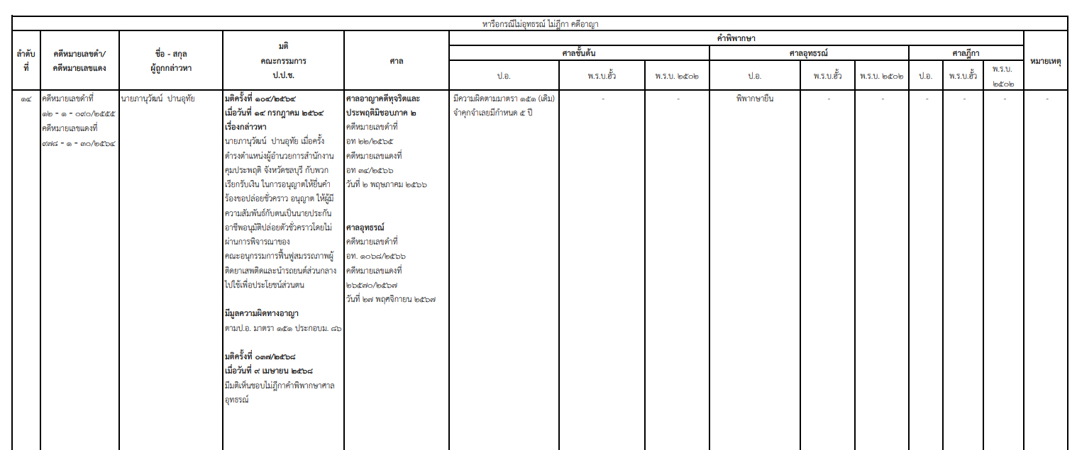 ความคืบหน้าล่าสุด เมื่อวันที่ 27 พฤศจิกายน 2567 ศาลอุทธรณ์ พิพากษายืนตามคำพิพากษาศาลอาญาคดีทุจริตและประพฤติมิชอบภาค 2 ที่มีคำพิพากษาว่า นายภานุวัฒน์ ปานอุทัย จำเลย มีความผิดตามมาตรา 151