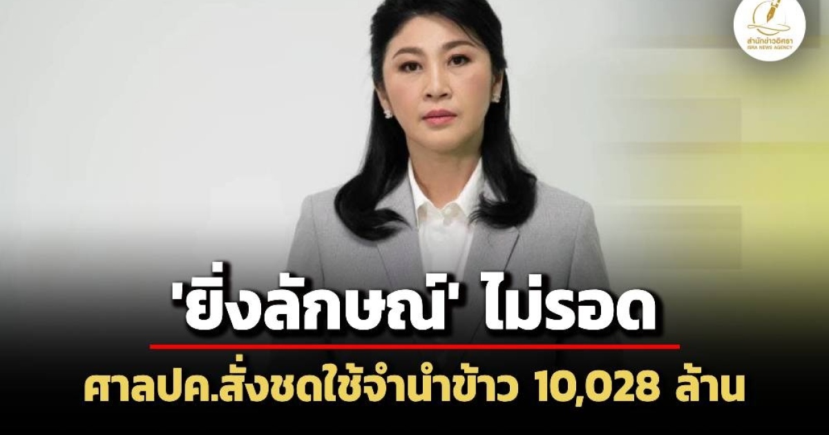 ศาลปกครองสูงสุดพิพากษาให้ ‘ยิ่งลักษณ์’ ชดใช้จำนำข้าว 10,028 ล้านบาท ยกเหตุระบายข้าวจีทูจีมีการทุจริต แต่ปล่อยปละละเลย ไม่ติดตามหรือสั่งยุติโครงการ