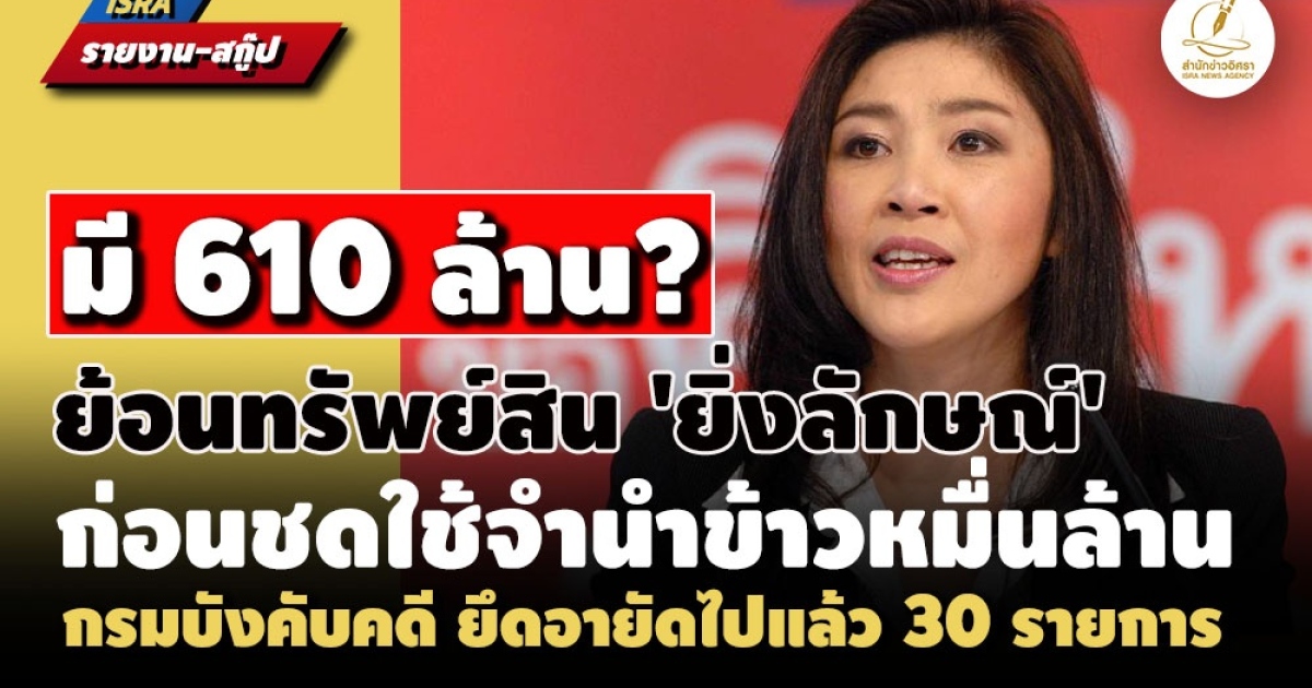 จากข้อมูลดังกล่าว ถ้าทรัพย์สินของ น.ส.ยิ่งลักษณ์ ที่หลบหนีคดีปล่อยปละละเลยให้เกิดความเสียหายในโครงการรับจำนำข้าว ที่ศาลฎีกาฯพิพากษาโทษจำคุก 5 ปี ไปอยู่ต่างประเทศ นับตั้งแต่ปี 2560 จนถึงปัจจุบัน 2568 ไม่มีอะไรเปลี่ยนแปลง เท่ากับว่ามีทรัพย์สินมูลค่า ประมาณ 610 ล้านบาท เทียบกันไม่ได้เลยกับค่าความเสียหายที่ต้องชดใช้ในโครงการรับจำนำข้าว ที่ถูกเรียกเก็บ