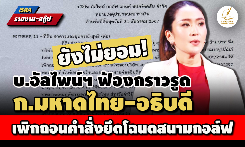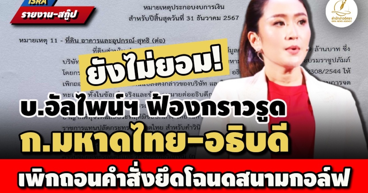 ยังไม่ยอม! บ.อัลไพน์ฯของครอบครัวชินวัตร ฟ้องกราวรูด ก.มหาดไทย รองปลัดฯ อธิบดีกรมที่ดิน จนท. เพิกถอนคำสั่งยึดโฉนดที่ดินสนามกอล์ฟ 447 ไร่ คืนมูลนิธิมหามกุฎฯ ยื่นโต้แย้งในศาลปกครองด้วย แจ้งในงบการเงิน คงถือกรรมสิทธิ์โดยชอบด้วยกฎหมาย